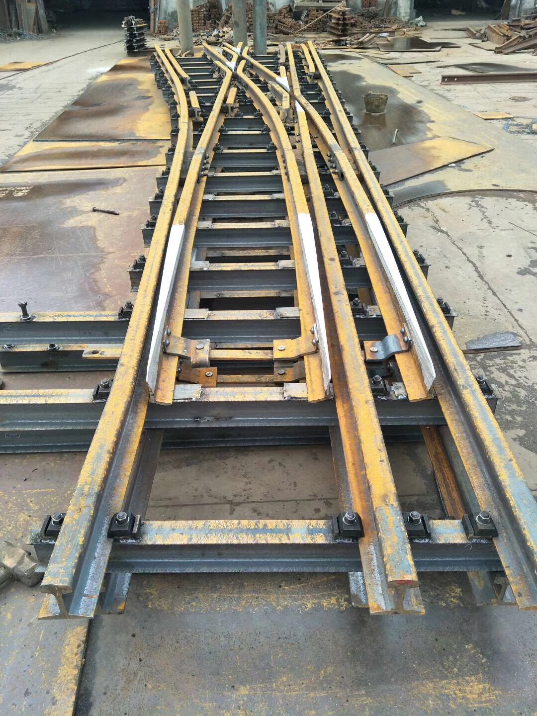 在上世紀六十年代林州人民(原林縣),自力更生,艱苦奮斗,在非常艱難困苦的歲月里,修造了舉世聞名的“人造天河”紅旗渠,被譽為世界八大奇跡之一,在新世紀的今天,林州兒女踏著前輩的足跡,發揚紅旗精神,繼續前進,為振興經濟中原崛起,在原來的基礎上不斷創新發展,使企業躍上了新的臺階。 我公司為上新產品整鑄道岔,斥巨資擴建廠房,引進設備,聘請人才,特聘(原煤炭部北京設計研究院)道岔專家胡工為我公司技術總監,特聘鐵道部寶雞橋梁廠鑄造專家王工為質檢總監,經過多方努力,無數次的試驗,整鑄道岔于2003年終于試制成功,并已批量生產投放市場,受到了各用戶的一致好評和青睞。 拼裝道岔是用螺拴和鉚釘連接在一塊的,使用后經礦車往來的軋壓和雨水的腐蝕,很容易出現螺帽脫落,鉚釘松動,造成機芯解體或損壞,而影響了正常的生產運輸和造成重大安全隱患,而整鑄道岔機芯是高溫一次澆鑄成型,經粹火,正火等多道工藝處理,其金相組織結構嚴密,抗拉抗沖擊性能極高。它是由多種元素組成的低合金剛,耐磨系數是普通拼裝機芯的4倍,從而大大降低了使用單位的生產成本,減少了更換、保修、保養等麻煩,整鑄道岔的優點再者就是承受能力大,運行速度快,使礦進的運輸量大幅度的提升、整鑄道岔的安全性能很好,因為它是一次性澆鑄成型的,在設計和生產過程咽喉部位已加高和加厚(俗稱道岔的有害空間),排除了車輪通過此段掉道的弊端,因此使礦車的速度大幅度提高,為使用單位多創了良好的經濟利益。