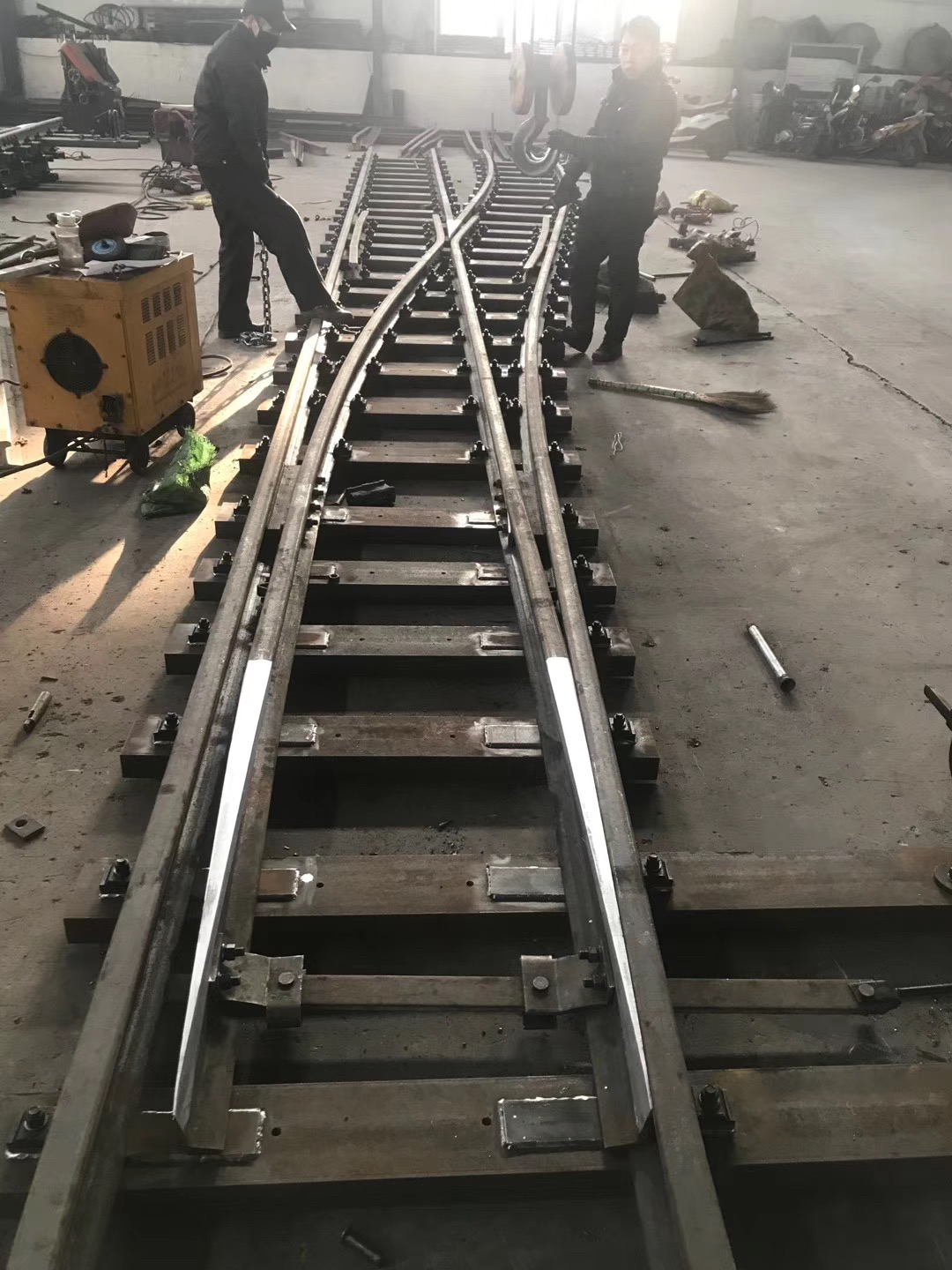 在上世紀六十年代林州人民(原林縣),自力更生,艱苦奮斗,在非常艱難困苦的歲月里,修造了舉世聞名的“人造天河”紅旗渠,被譽為世界八大奇跡之一,在新世紀的今天,林州兒女踏著前輩的足跡,發揚紅旗精神,繼續前進,為振興經濟中原崛起,在原來的基礎上不斷創新發展,使企業躍上了新的臺階。 我公司為上新產品整鑄道岔,斥巨資擴建廠房,引進設備,聘請人才,特聘(原煤炭部北京設計研究院)道岔專家胡工為我公司技術總監,特聘鐵道部寶雞橋梁廠鑄造專家王工為質檢總監,經過多方努力,無數次的試驗,整鑄道岔于2003年終于試制成功,并已批量生產投放市場,受到了各用戶的一致好評和青睞。 拼裝道岔是用螺拴和鉚釘連接在一塊的,使用后經礦車往來的軋壓和雨水的腐蝕,很容易出現螺帽脫落,鉚釘松動,造成機芯解體或損壞,而影響了正常的生產運輸和造成重大安全隱患,而整鑄道岔機芯是高溫一次澆鑄成型,經粹火,正火等多道工藝處理,其金相組織結構嚴密,抗拉抗沖擊性能極高。它是由多種元素組成的低合金剛,耐磨系數是普通拼裝機芯的4倍,從而大大降低了使用單位的生產成本,減少了更換、保修、保養等麻煩,整鑄道岔的優點再者就是承受能力大,運行速度快,使礦進的運輸量大幅度的提升、整鑄道岔的安全性能很好,因為它是一次性澆鑄成型的,在設計和生產過程咽喉部位已加高和加厚(俗稱道岔的有害空間),排除了車輪通過此段掉道的弊端,因此使礦車的速度大幅度提高,為使用單位多創了良好的經濟利益。